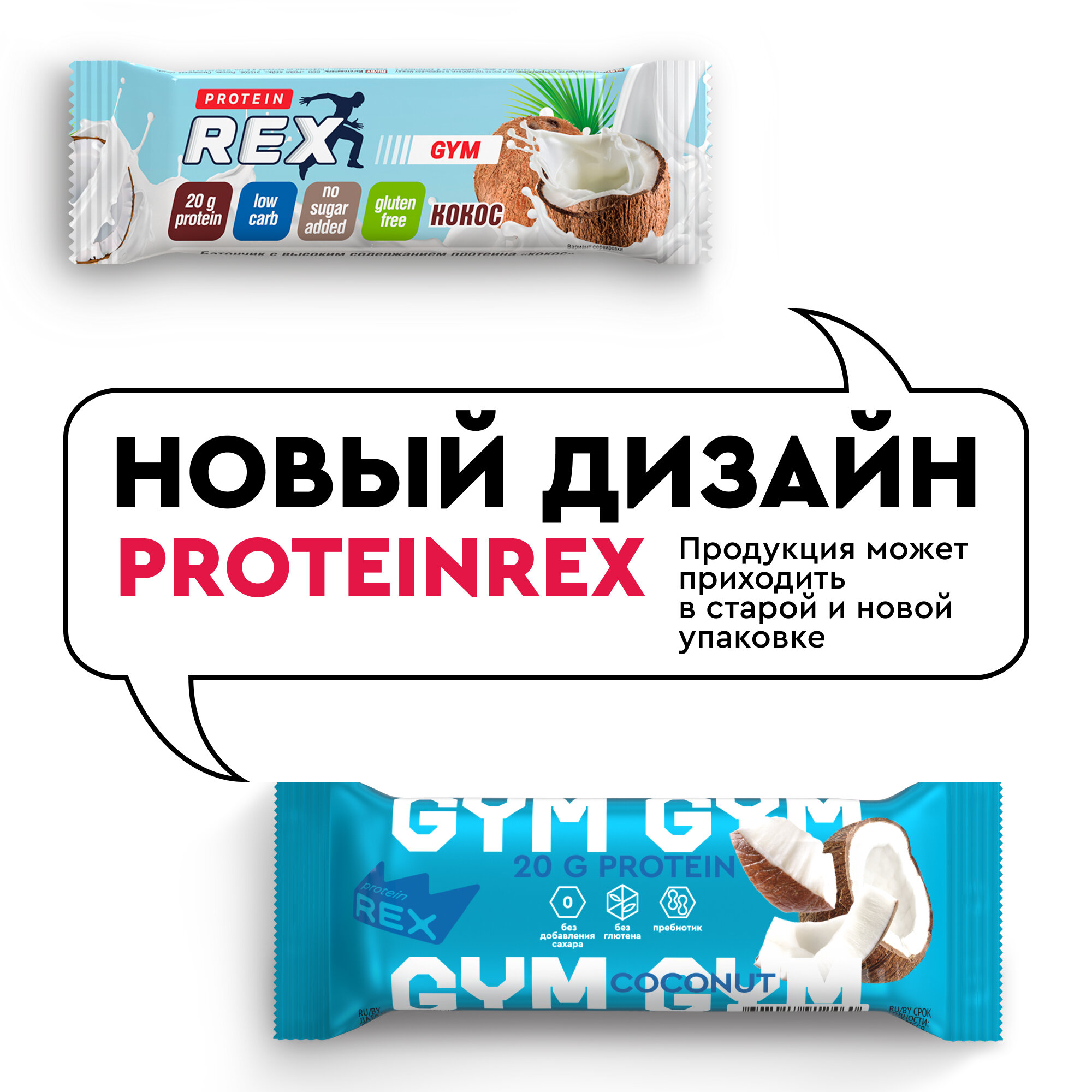 Протеиновые батончики без сахара ProteinRex GYM (Джим) кокос, 15 шт х 60 г, 190 ккал спортивное питание, ПП еда, спортивные батончики