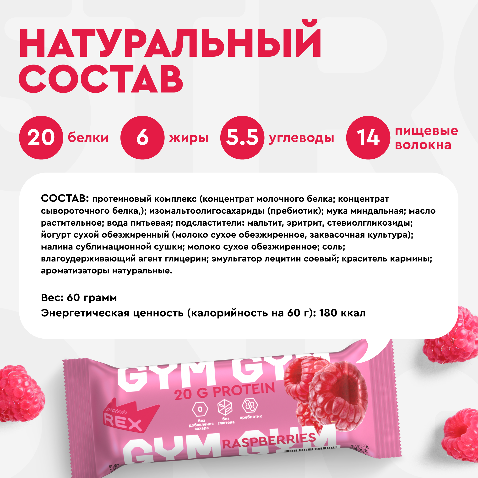 Протеиновые батончики без сахара ProteinRex GYM (Джим) малина-йогурт, 15 шт х 60 г, 180 ккал спортивное питание, ПП еда, спортивные батончики
