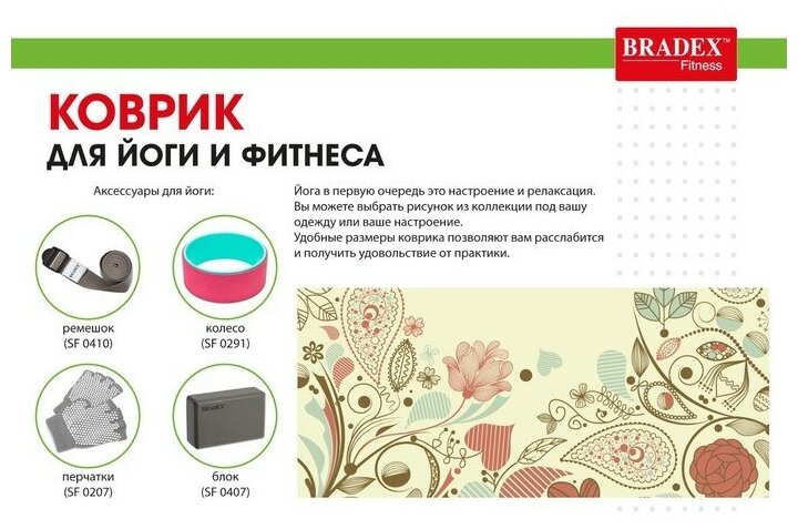 Коврик для йоги BRADEX 173х61х0.4 см, с рисунком флауэр SF 0406 интересное: