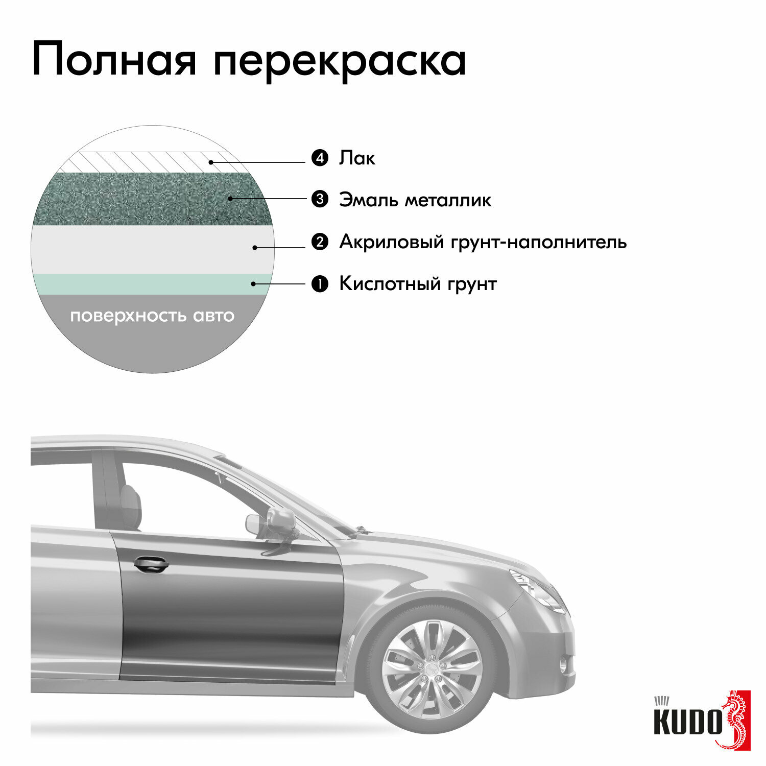 KUDO KU41495 Эмаь автомобиьная ремонтная метаизированная унный свет 495 520 м