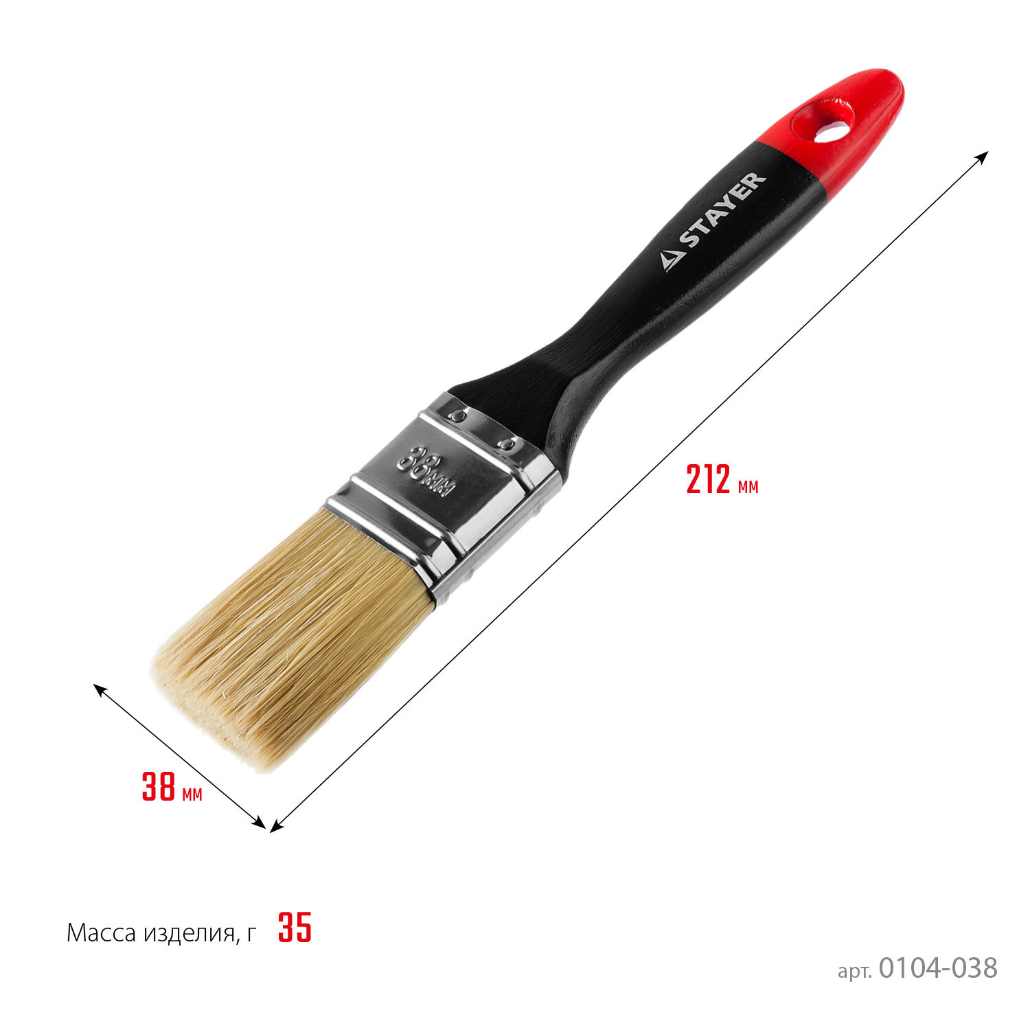 STAYER Universal, 38 мм, 1.5″, светлая, натуральная щетина, деревянная ручка, все виды ЛКМ, плоская кисть, Professional (0104-038)
