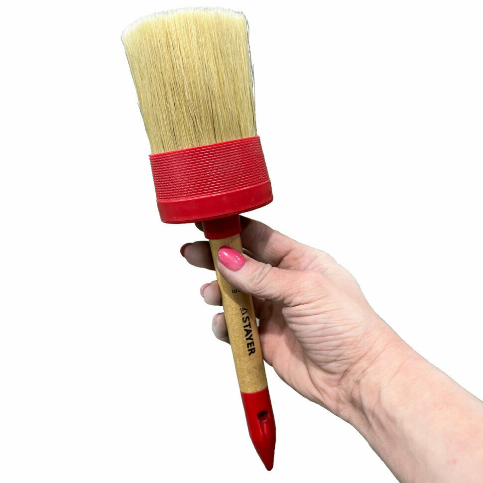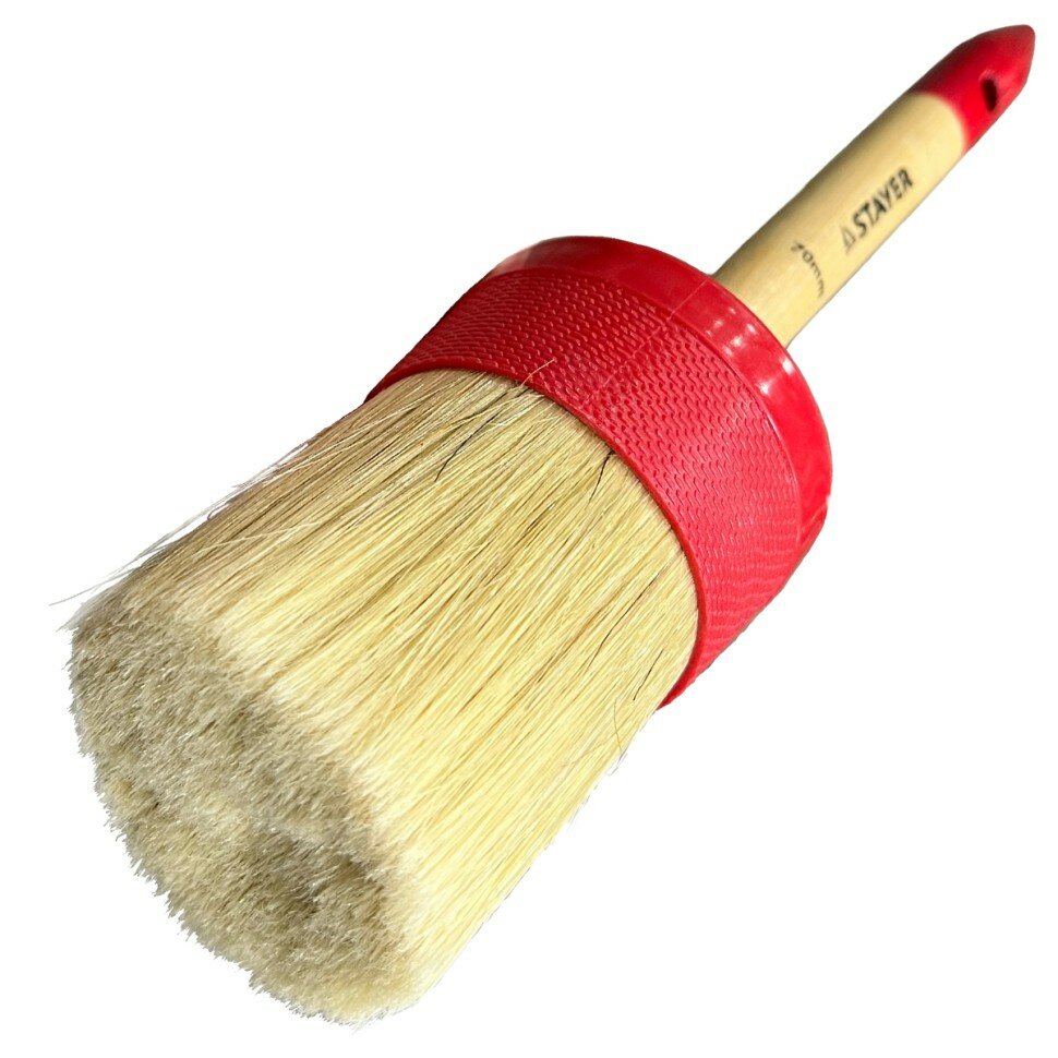 Круглая кисть STAYER 70 мм пластмассовый корпус светлая натуральная щетина деревянная ручка (0141-70)