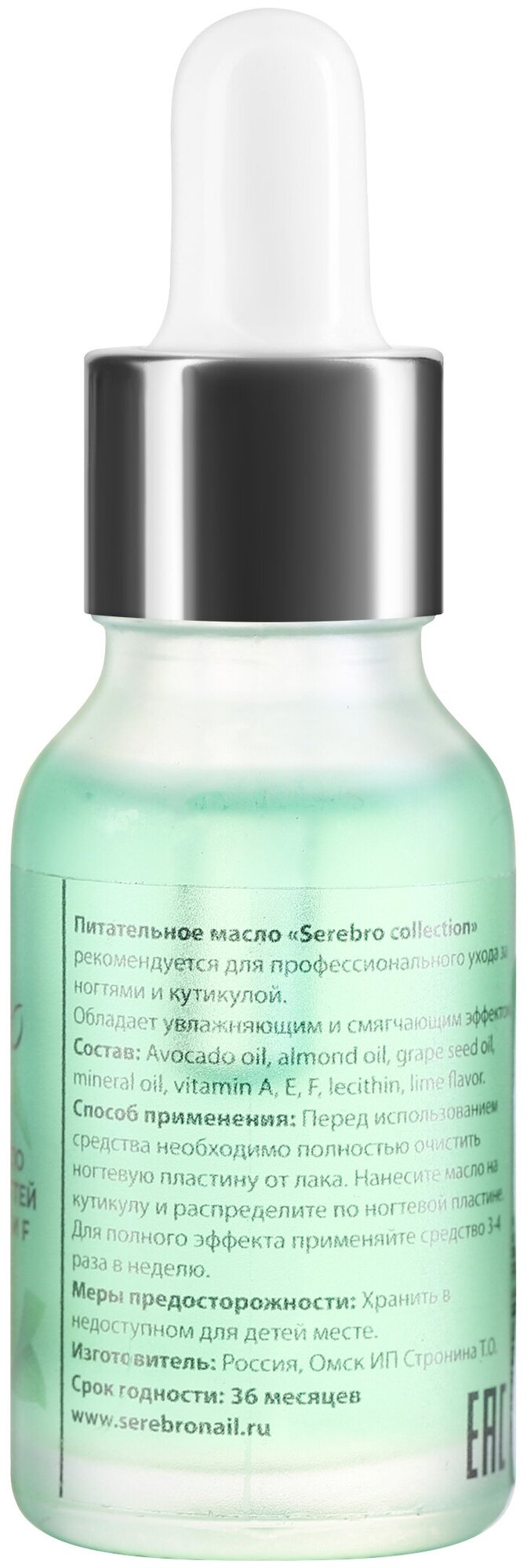 Масло для кутикулы и ногтей минеральное Serebro (лайм), 15 мл