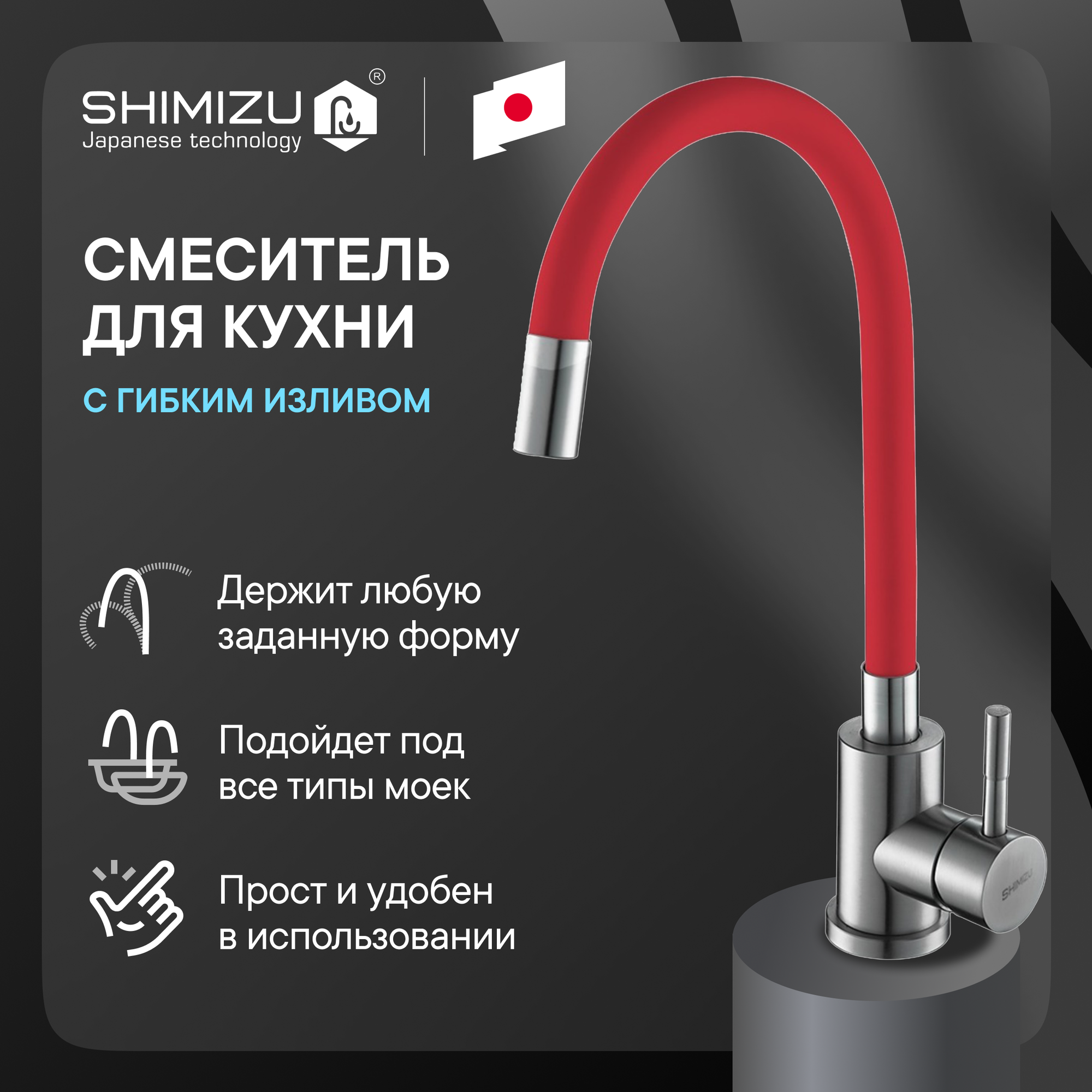 Смеситель для кухни SHIMIZU с гибким изливом
