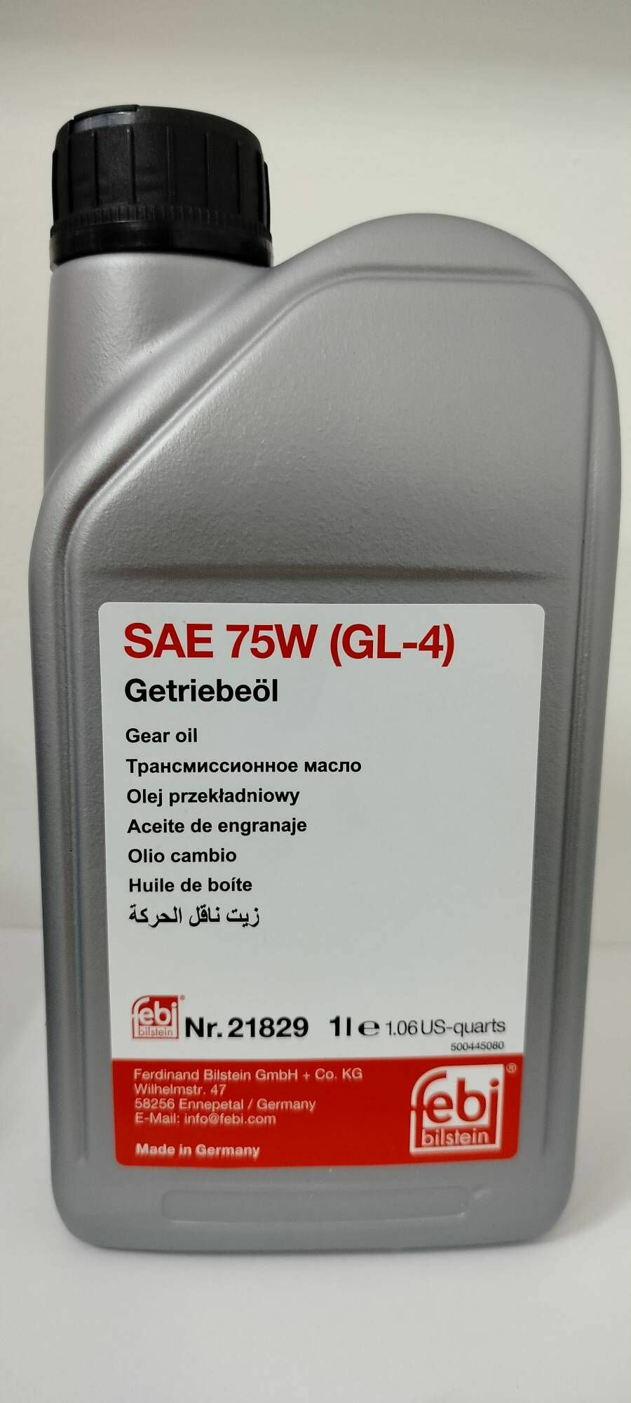 FEBI 21829 Масло трансмиссионное SAE 75W (GL-4) жёлтое, 1л. 1шт