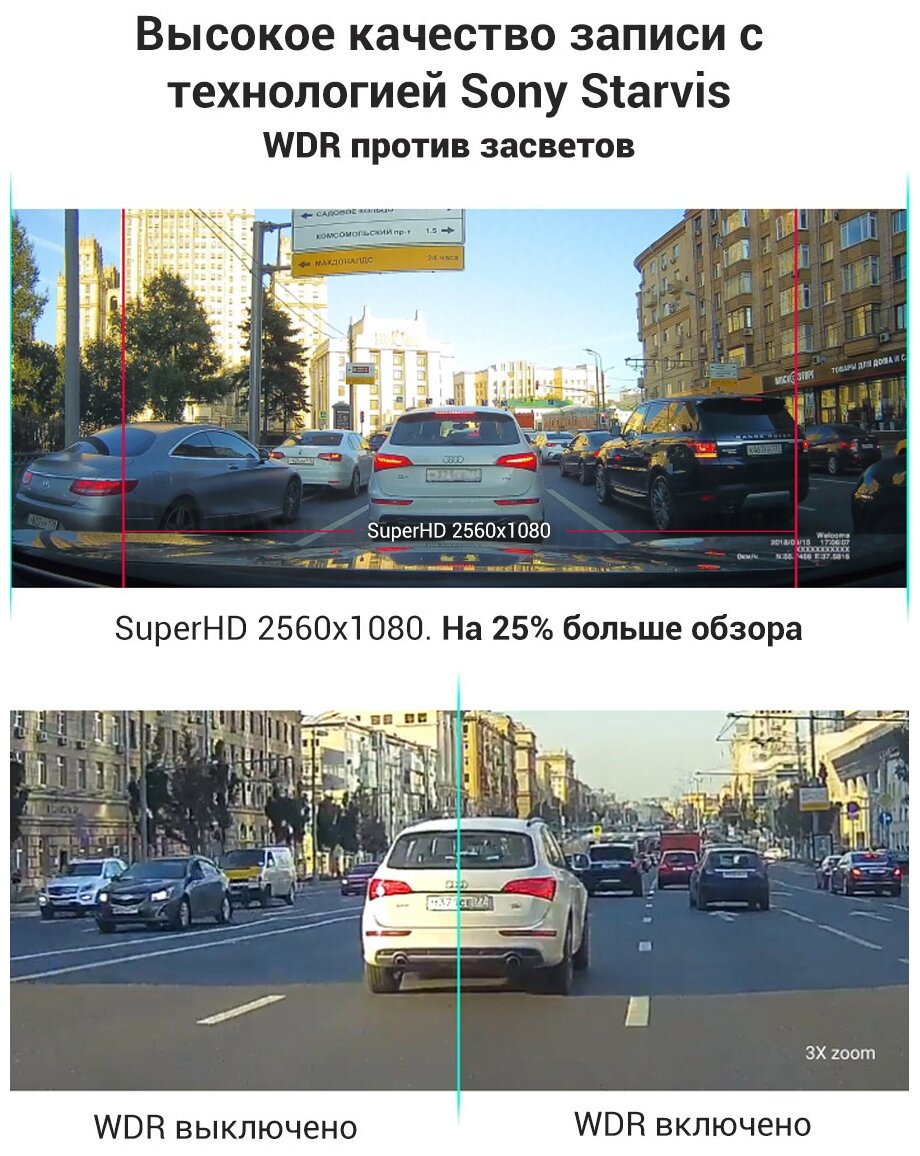| Плюсы: | Денис Г., номер заказа 2043930, Компактный, угол обзора, функция распознавания знаков, Wi-Fi, достойное качество сьемки, не бликует |