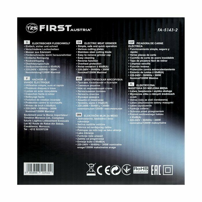 Купить Мясорубка FIRST AUSTRIA FIRST FA-5143-2 Black