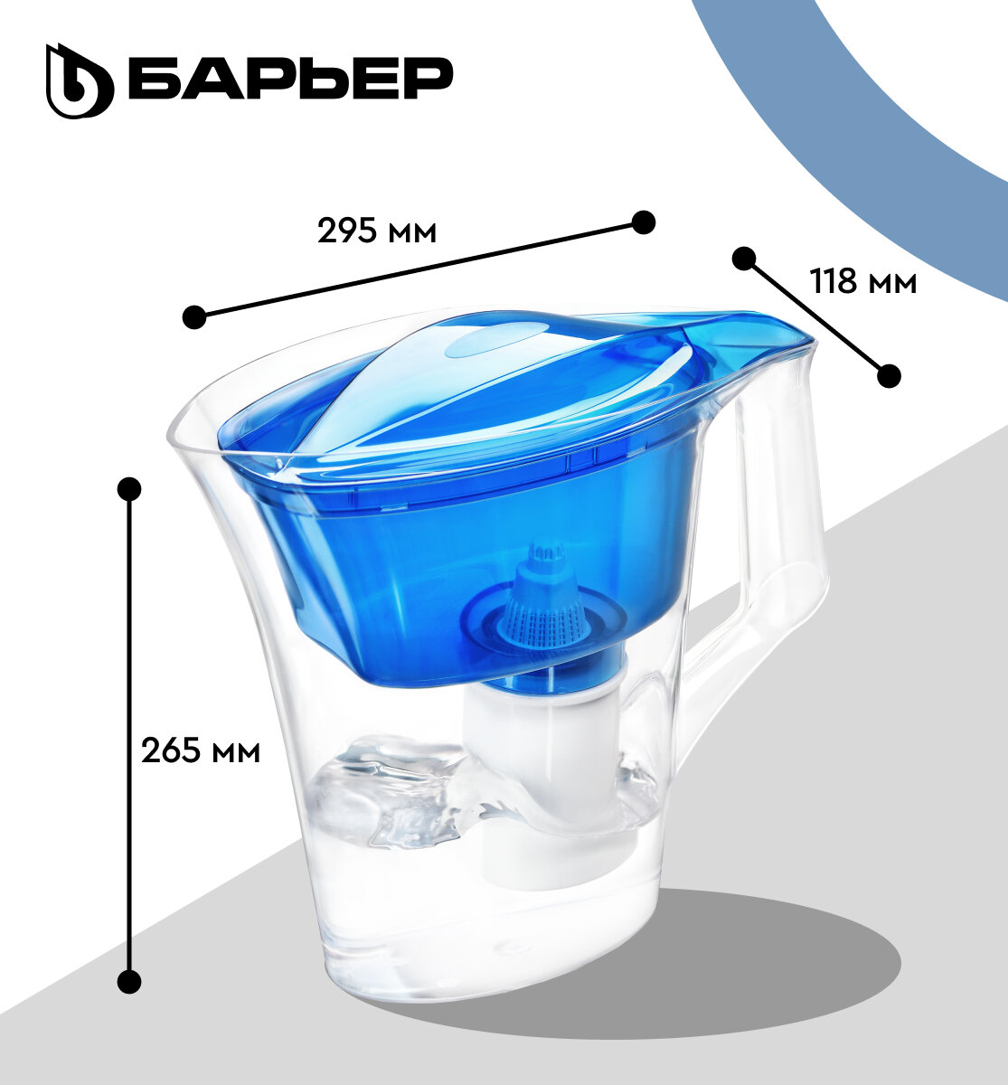 БАРЬЕР Нова синий, фильтр-кувшин для очистки воды, 2,5 л, без индикатора