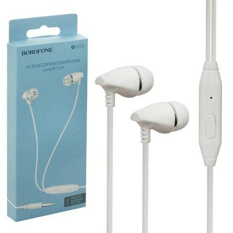 Наушники проводные вакуумные для телефона с микрофоном и пультом. BOROFONE BM 25 Белые Вкладыши затычки с проводом для компьютера, смартфона, плеера, мобильника, планшета, андройда.