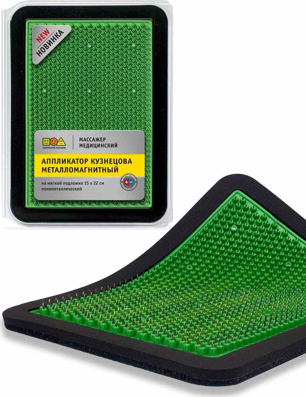 Аппликатор Кузнецова металломагнитный на мягкой подложке 15х22 см полиметаллический коврик акупунктурный зеленый массажер медицинский