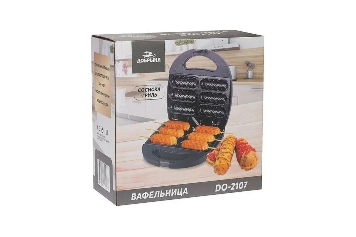 Вафельница добрыня DO-2107 сосиска-гриль, черный/металлик