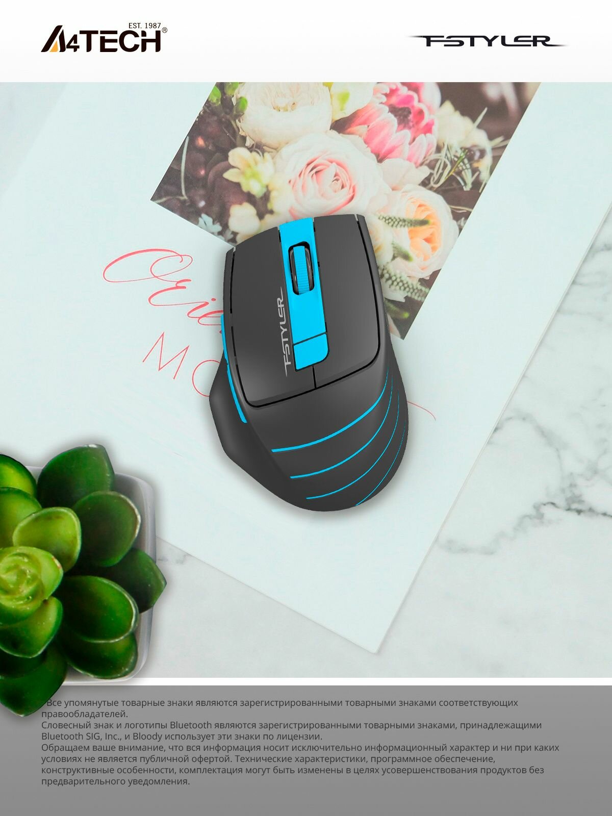 Мышь беспроводная A4Tech Fstyler FB10C черный/синий (FB10C ASH BLUE)
