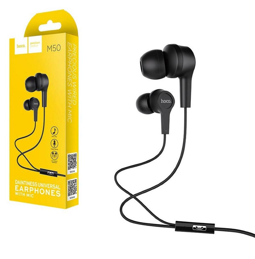 Наушники вкладыши с микрофоном Hoco M50 Daintiness Universal Black, мобильная гарнитура, черные