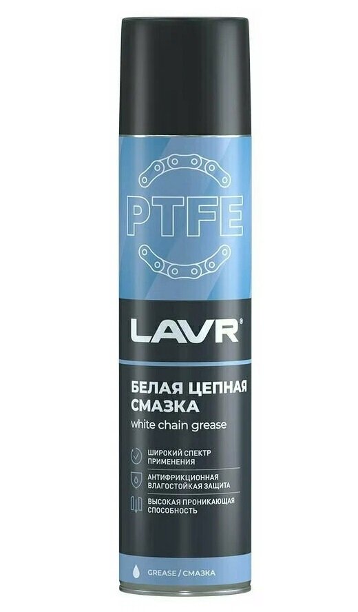 Цепная смазка LAVR белая, с PTFE, 400 мл, аэрозоль Ln1741 LAVR 2499683 .
