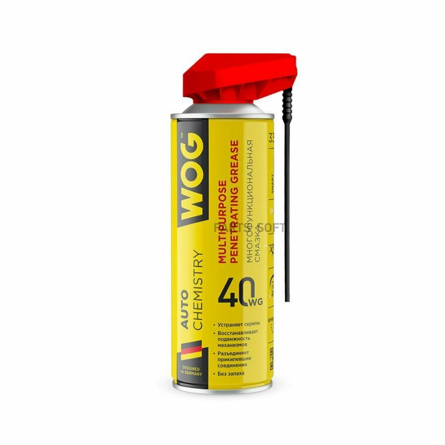 WOG : WGC0301 Многоцелевая универсальная проникающая смазка WOG WG-40 (WD40) с профессиональным распылителем 2 в 1, 335 мл