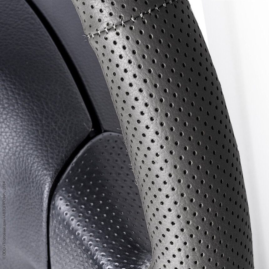 Оплётка для перетяжки руля "AUTOPROFI", натуральная кожа, перфорированная, нить, игла чёрный, разм. М