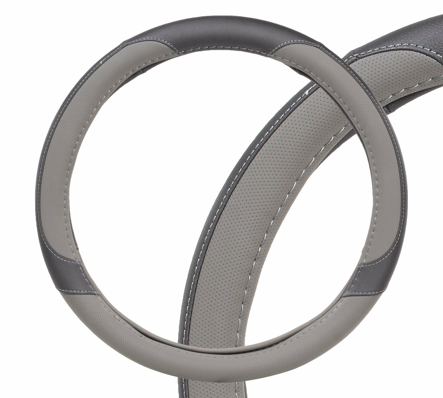 Оплетка на руль, искусственная кожа с перфорацией, серая/черная, 38 см / M