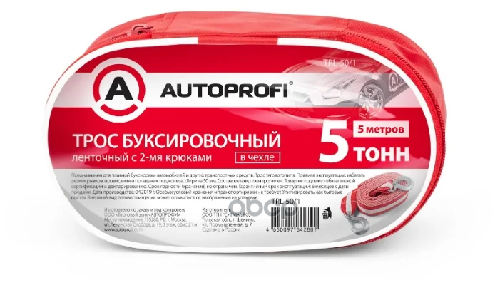 Trl-50/1_Трос Буксировочный! Ленточный, С Крюками, 5Т, 5М, Сумка AUTOPROFI арт. TRL-50/1