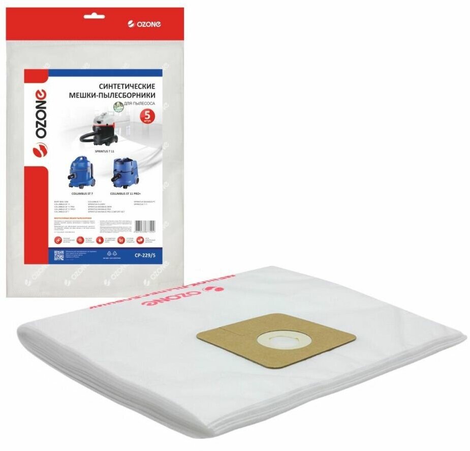 Синтетические мешки-пылесборники Ozone CP-229/5 для пылесоса COLUMBUS ST 7, ST 11, 5 шт