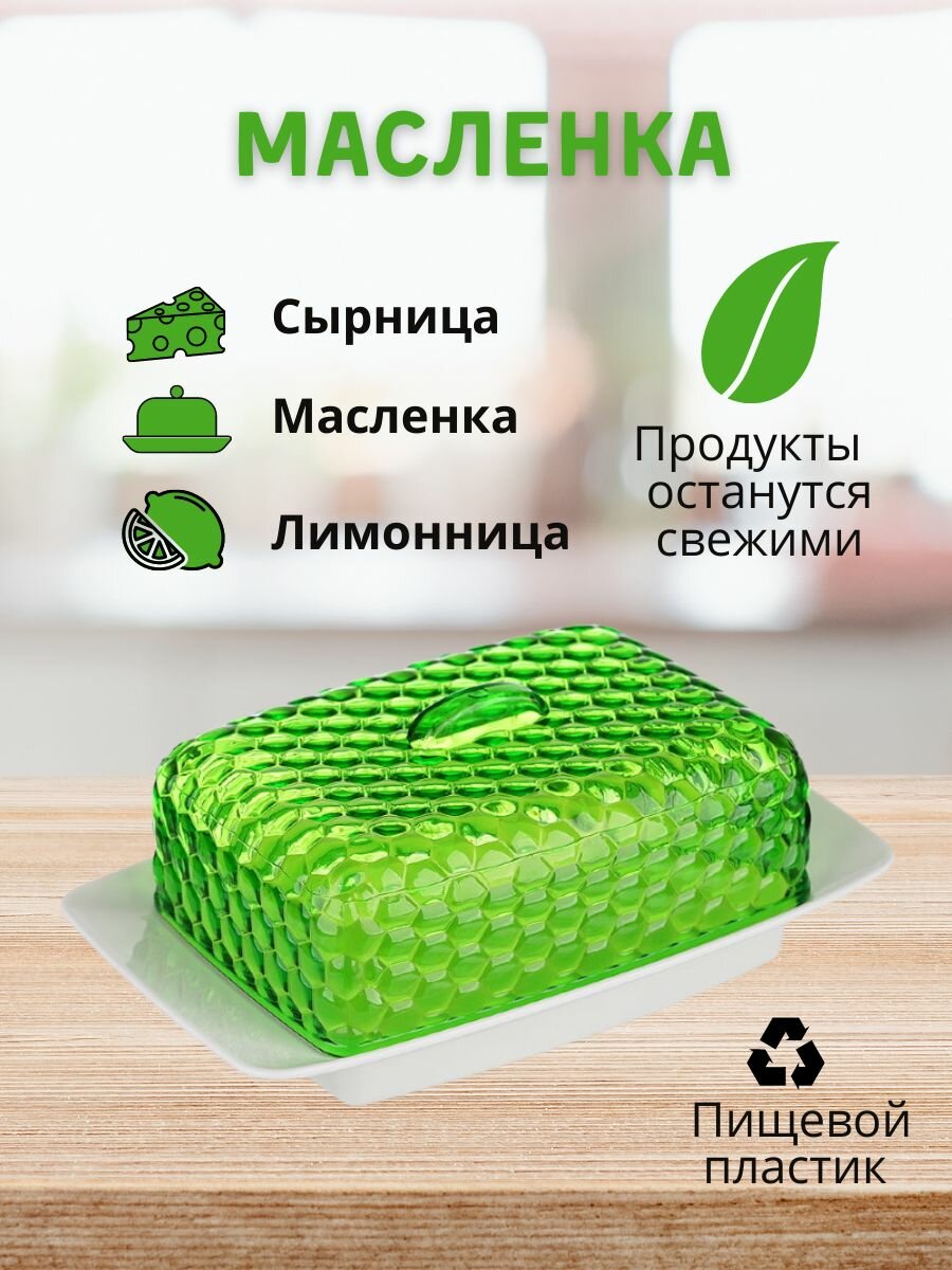 Масленка Альтернатива Мозаика, емкость / контейнер для сливочного масла, сырница, масленка с крышкой, контейнер для масла, бело-прозрачный