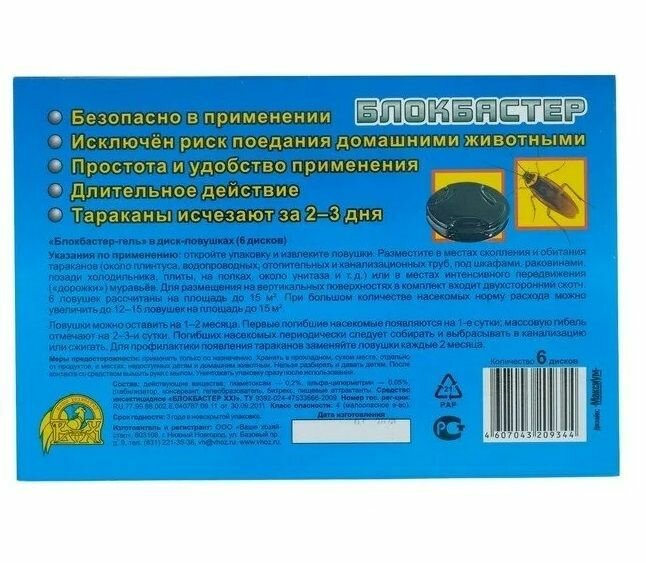 Блокбастер диски, ловушка от тараканов 2 шт.