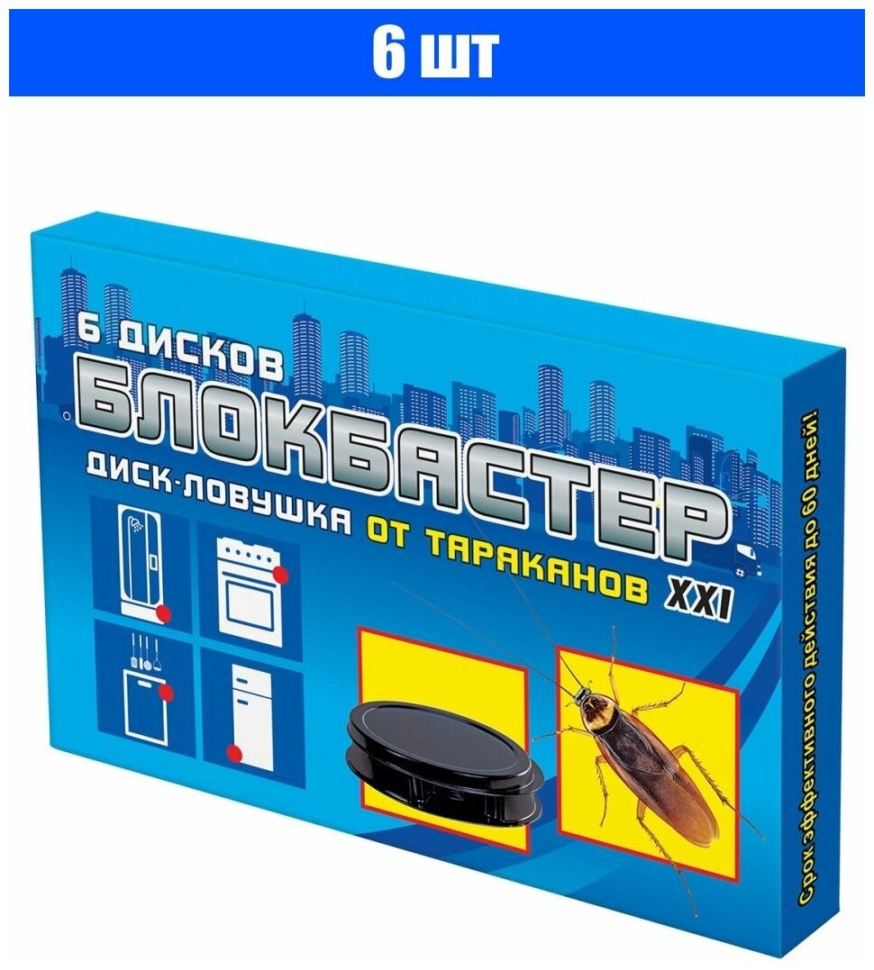 Блокбастер диск - ловушка от тараканов, средство от тараканов, 6 дисков в упаковке