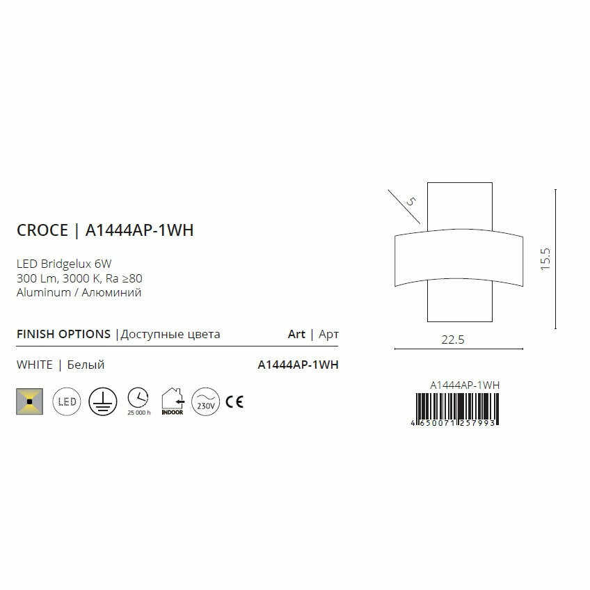 Arte lamp A1444AP-1WH Настенный светодиодный светильник Croce Croce