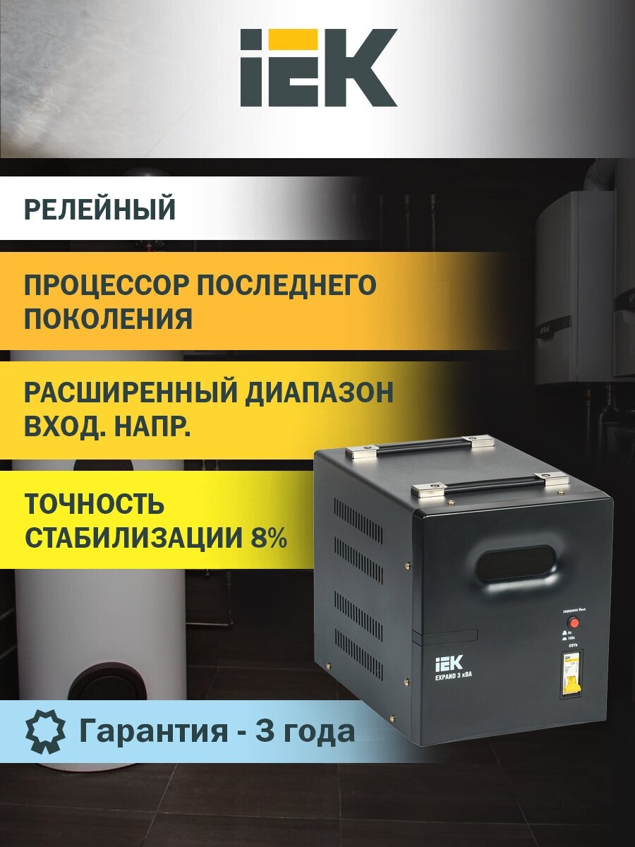 Стабилизатор напряжения IEK Expand 3кВА однофазный черный (ivs21-1-003-11) IVS21-1-003-11 .