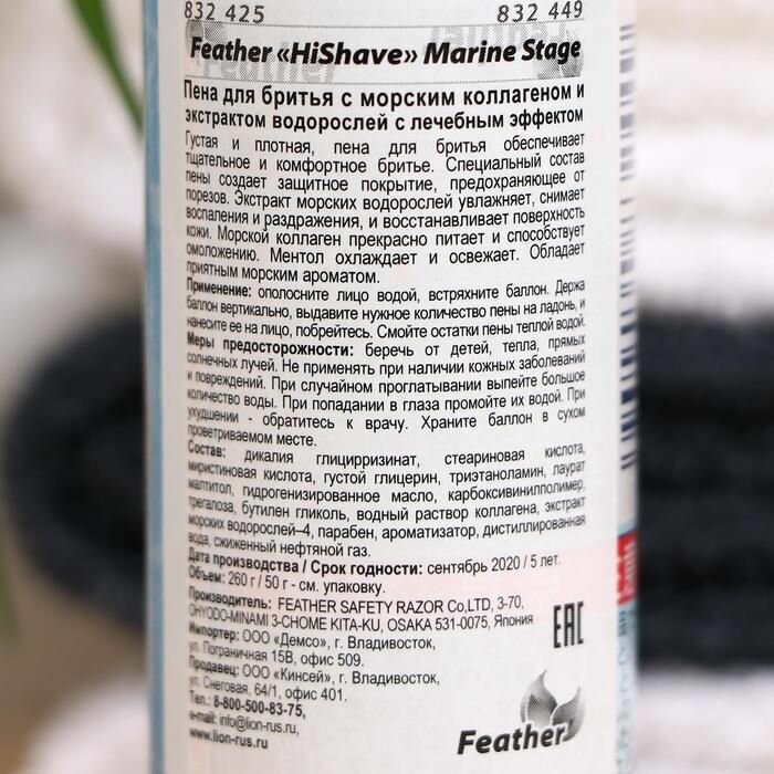 Feather hishave marinestage пена для бритья морским коллагеном и экстрактом водорослей с лечебным эффектом, 260 гр