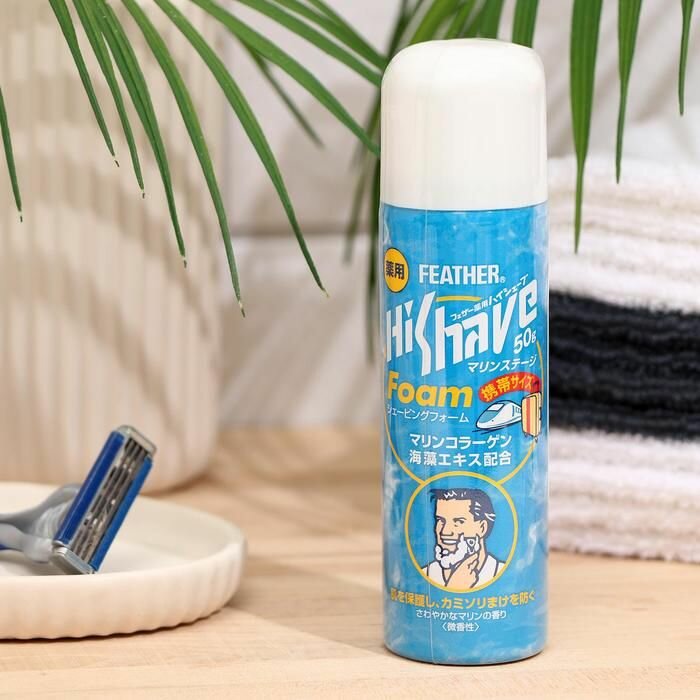 FEATHER Пена для бритья HiShave лечебная с экстрактом морских водорослей и коллагеном, 50 гр., баллон