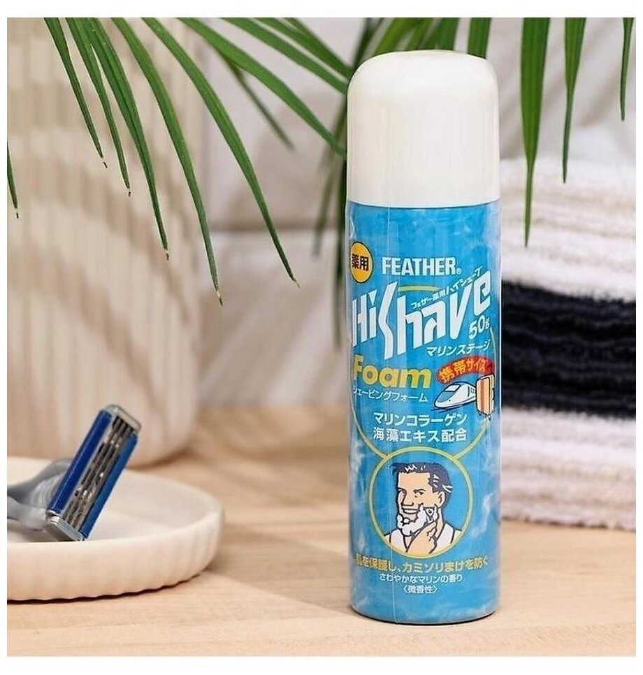 Feather HiShave Пена для бритья морским коллагеном и экстрактом водорослей с лечебным эффектом, 50гр