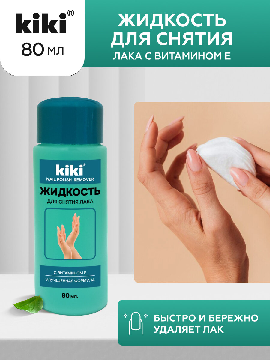 Жидкость для снятия лака KIKI с витамином Е суперэффективная с улучшенной формулой, кики, 80 мл