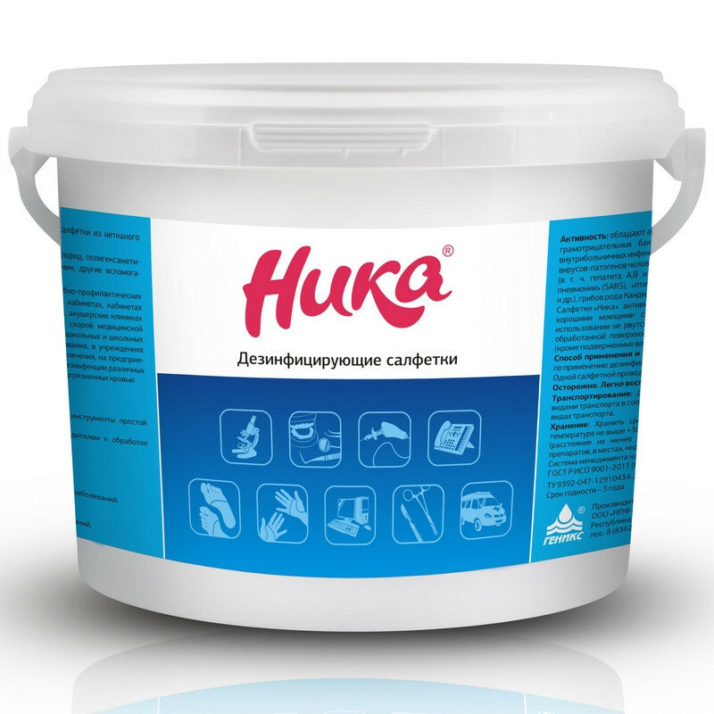 Дезинфицирующие салфетки влажные 300шт НИКА, для обработки рук и поверхностей, ведро,