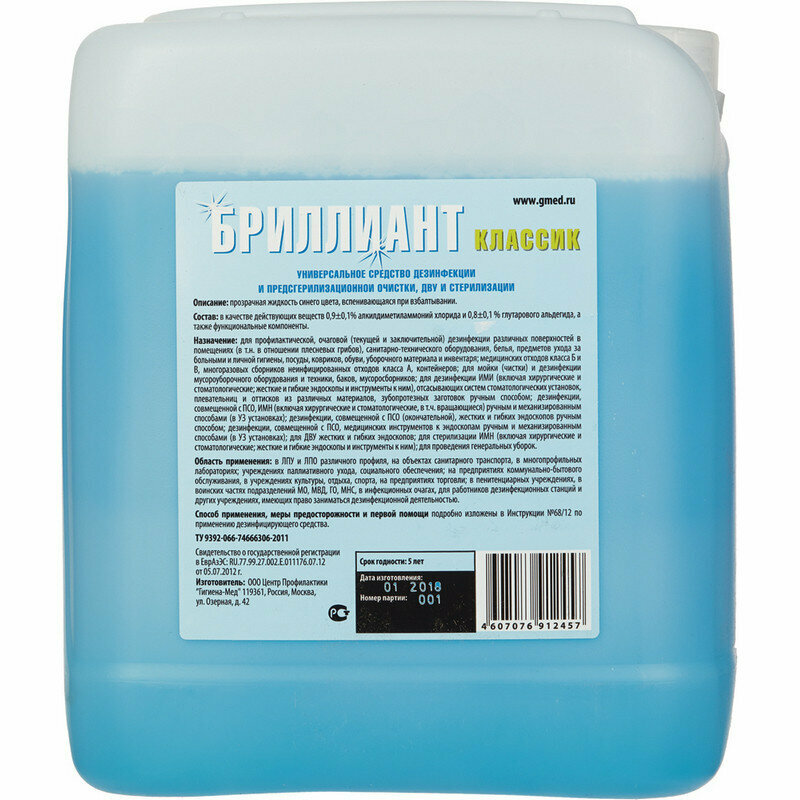 Средство для дезинфекции поверхностей и оборудования Бриллиант классик 5 л, 1363150