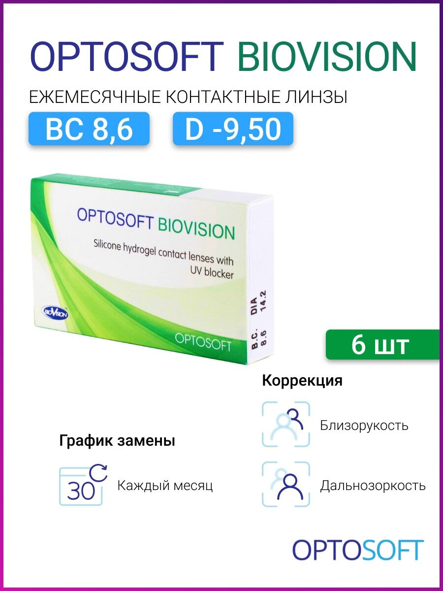 Купить Контактные линзы Optosoft BioVision,(6 линз), 6 шт., D -9.50, R 8.6, Ежемесячные