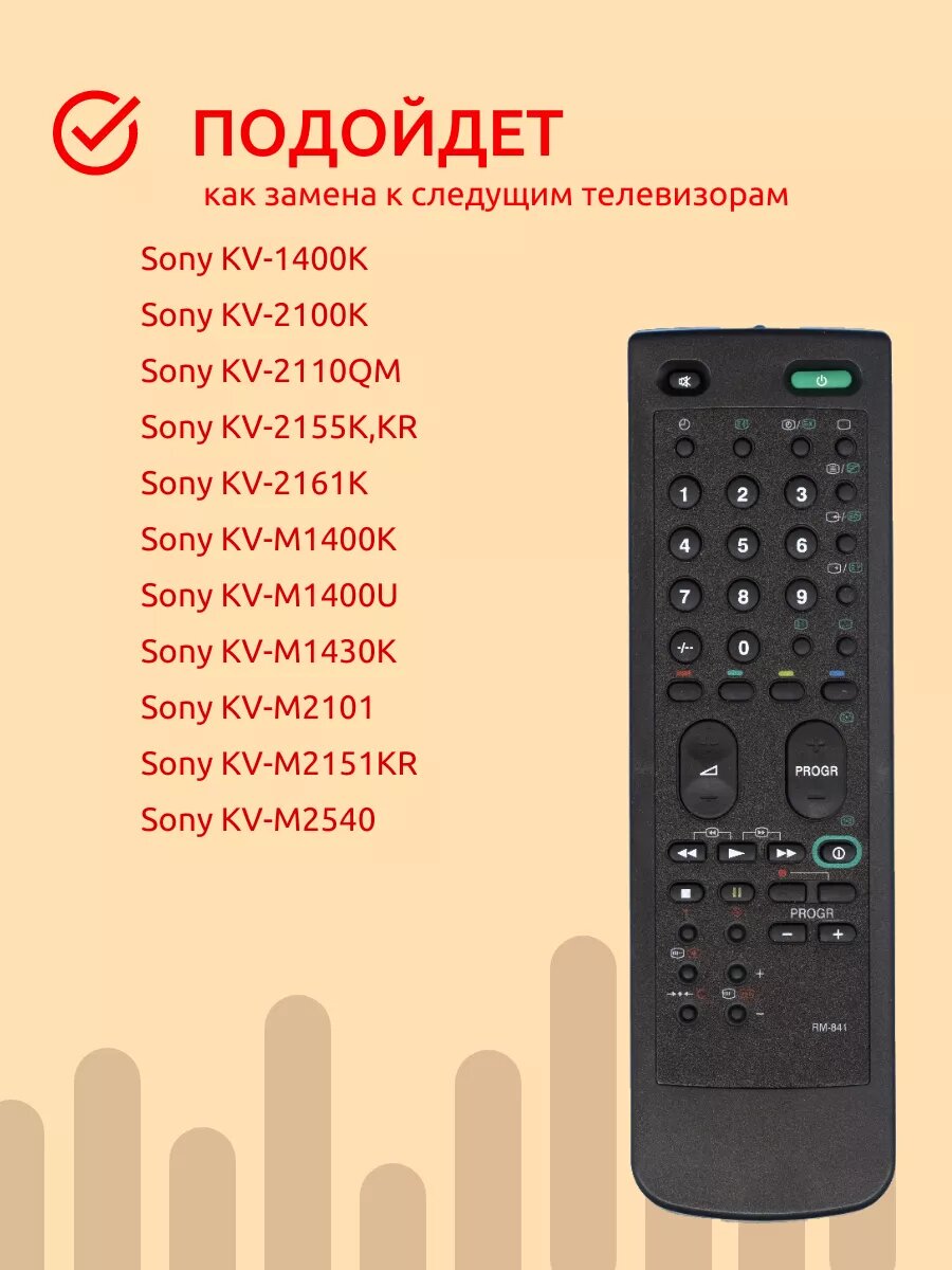 Пульт ДУ Huayu RM-841 для телевизоров Sony KV-2155KR/KV-M1400K/KV-1400K/KV-2100K/KV-2110QM, черный