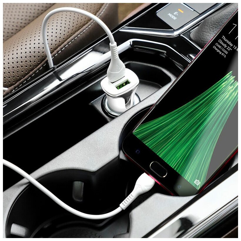 Автомобильное зарядное устройство, 2 USB 3.4A 18W QC3.0 (Z31), usb cable Lightning, HOCO, белый