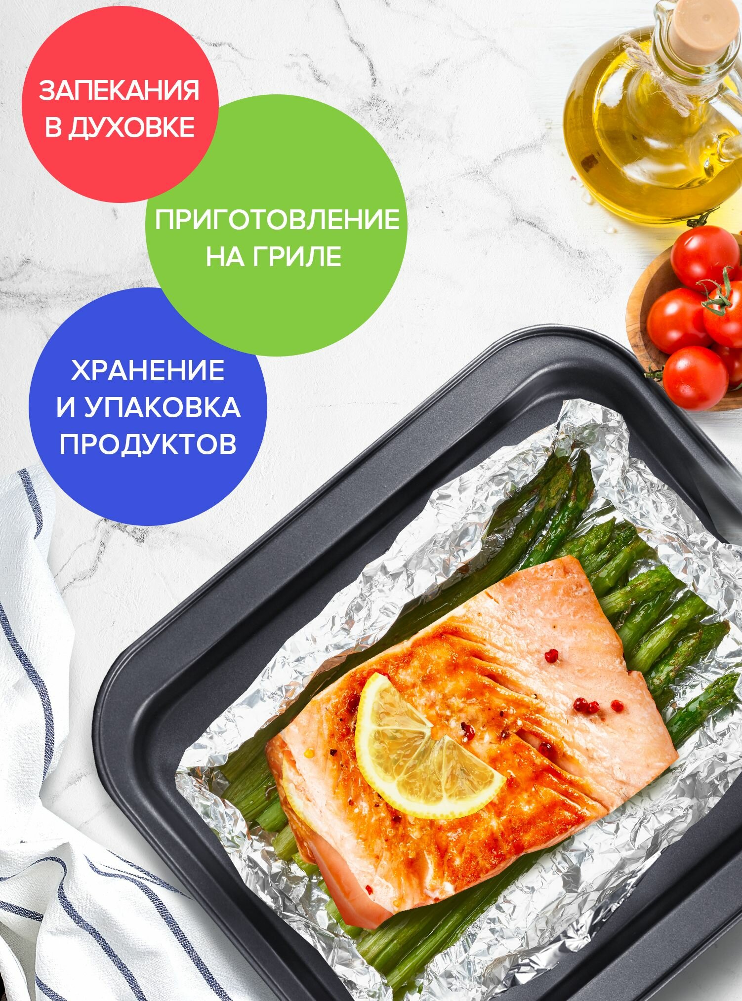 Фольга пищевая Lomberta прочная 11 мкм, алюминиевая в рулоне 50 метров для запекания/выпечки/гриля/хранения еды и окрашивания волос, профессиональная