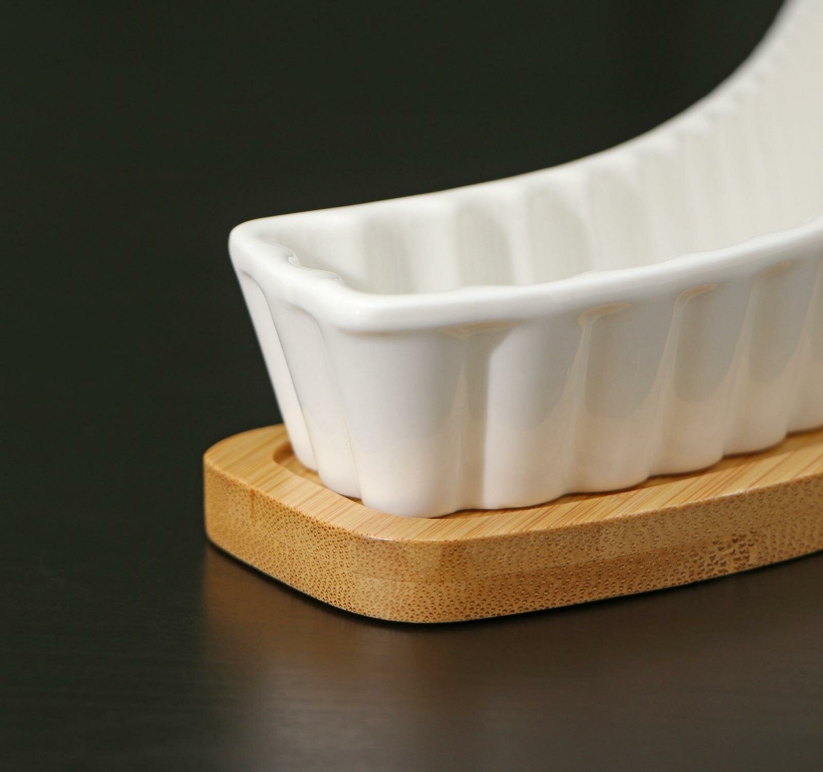 BellaTenero Блюдо фарфоровое для оливок на деревянной подставке BellaTenero, 35×4×3 см, цвет белый