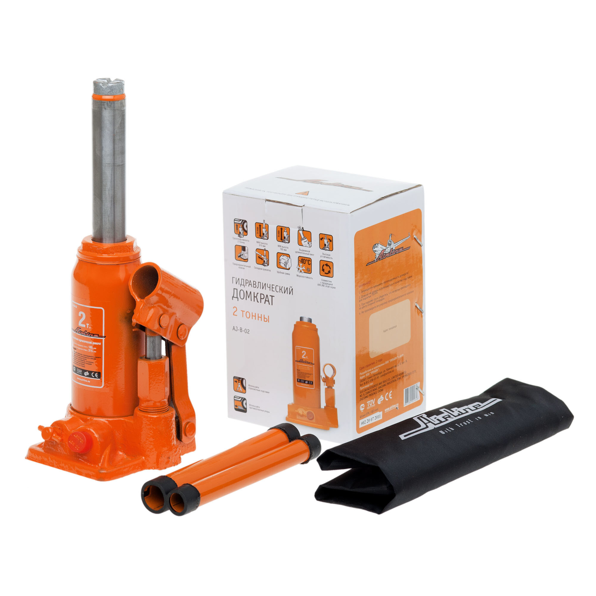 AIRLINE AJ-B-02 Домкрат бутылочный 2т в сумке (MIN - 165 мм, MAX - 315 мм) (AJ-B-02) 1шт