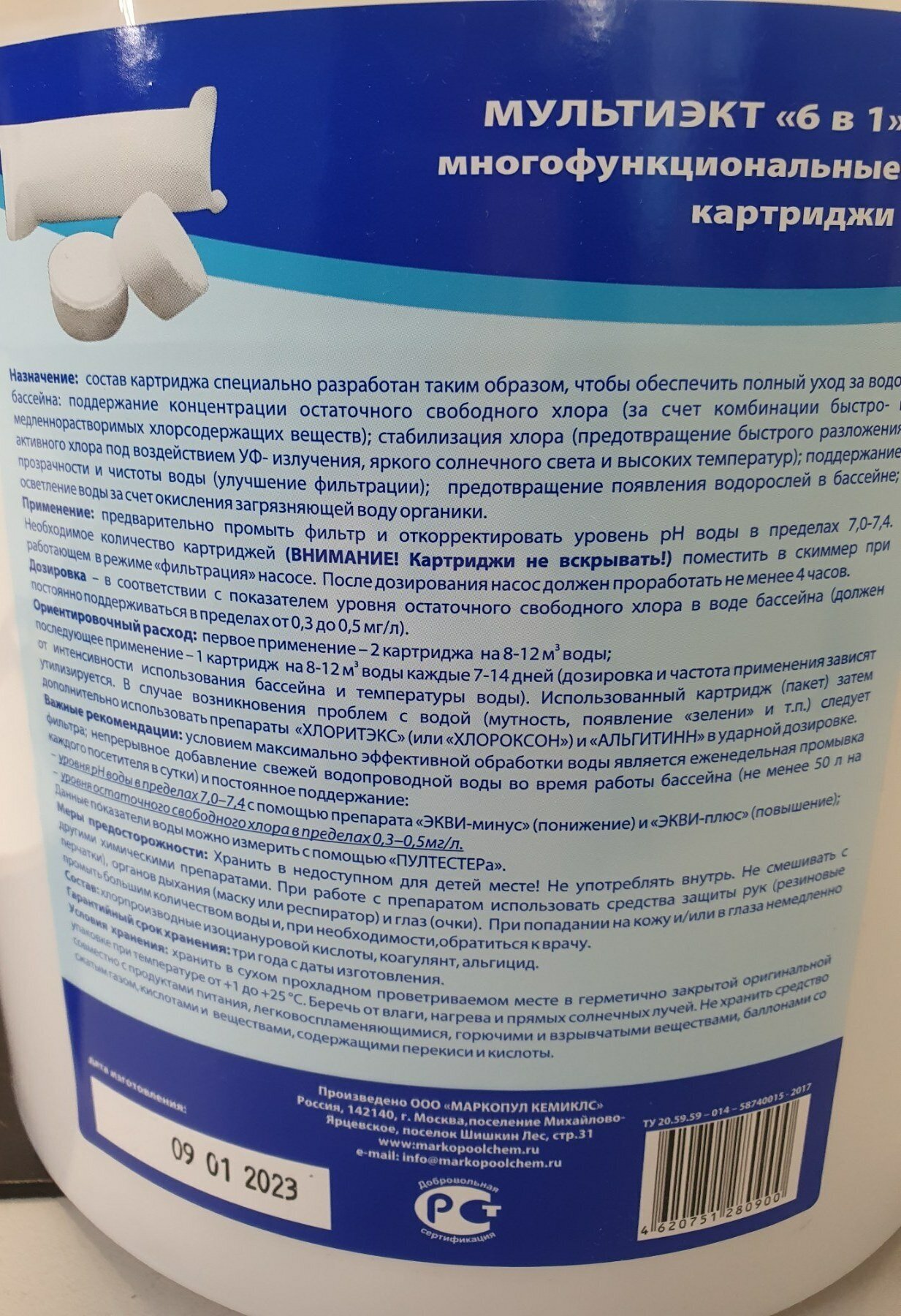 Ниже Вы можете прочитать отзывы на Маркопул Кемиклс Средство для комплексной обработки воды плавательных бассейнов Мультиэкт 6в1, картридж, 4 кг 44047, ознакомится с подробными характеристиками, посмотреть интересные обзоры и фотографии на Маркопул Кемиклс Средство для комплексной обработки воды плавательных бассейнов Мультиэкт 6в1, картридж, 4 кг 44047.