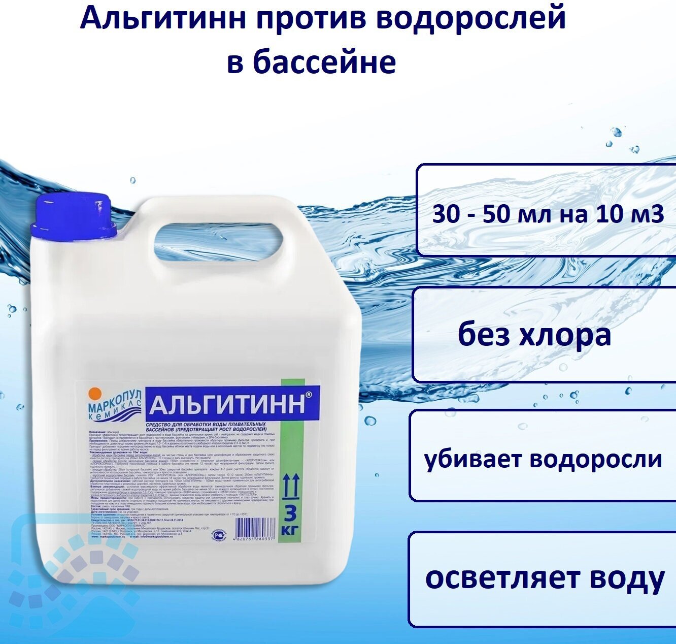 Альгитинн для бассейна (3 л): Альгицид, средство против цветения воды в бассейне. Маркопул Кемиклс.