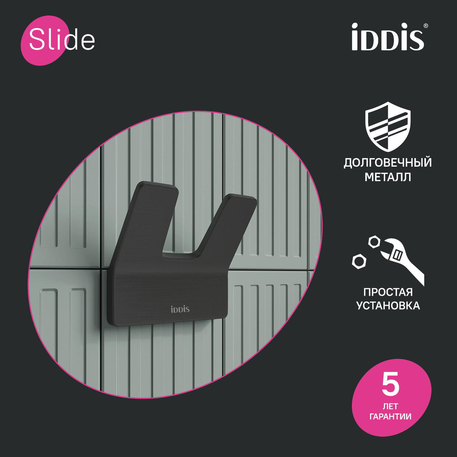 Купить Крючок для ванной Iddis Slide двойной на шуруп металл графит (SLIGM20i41)