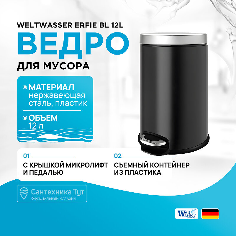 СохранитьВедро для мусора педальное WeltWasser WW ERFIE BL 12L 10000000898 черный матовый интересное: