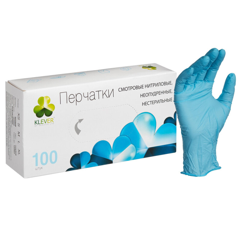 Перчатки одноразовые нитриловые смотровые Klever, нестерильные, неопудренные, размер L, голубые, 50 пар в упаковке