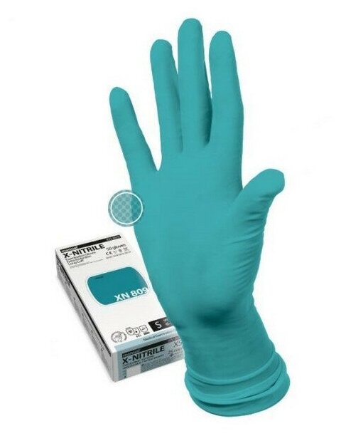 Перчатки нитриловые повышенной прочности с удлиненной манжетой Manual XN 809 сине-зеленый (25 пар, S)