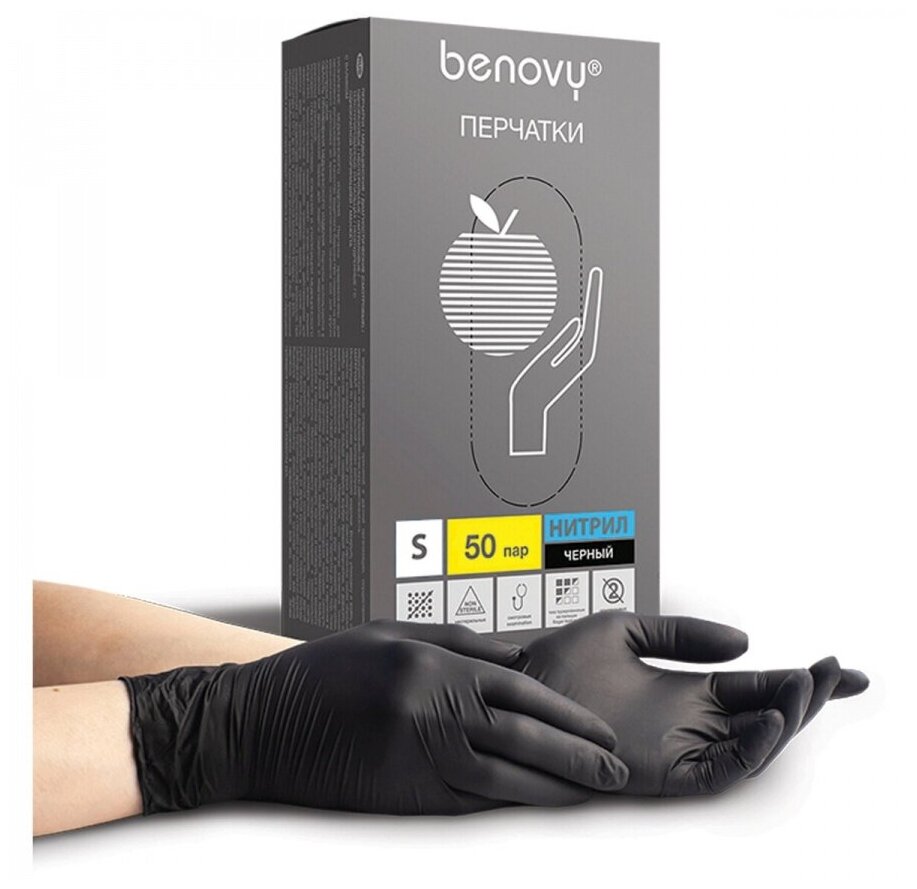 BENOVY Перчатки нитриловые 50 пар, черные, размер M, одноразовые, медицинские