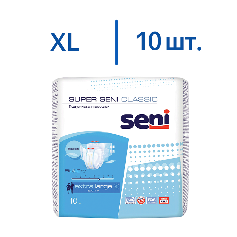 Seni Super Classic подгузники д/взрослых Extra Large (№4), 10 шт