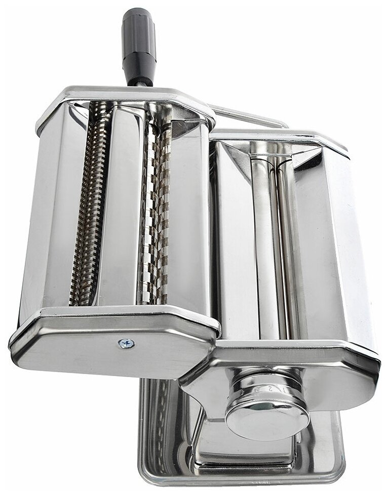 Тесто хорошо раскатывает. P..S. сломалась....... всё,ни чего не раскатывает,шестерни стёрлись,металл ещё мягче чем алюминий. Недостатки: Не раскатывает ни тальолини,ни феттучини. P.S. сломалась Не плохая в принципе для раскатки теста ,но лапшерезкой назвать её не могу,так как тесто на лапшу не прорезает. P.S. сломалась. |