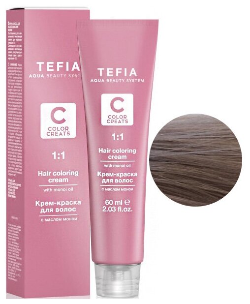 Крем-краска с маслом монои TEFIA Color Creats, 60 мл (7.81 блондин шоколад пепельный)